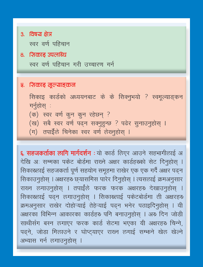 The Constitution of Nepal 2072 guaranteed compulsory and free education up to the basic level and free education up to the secondary level for all children as a fundamental right. To ensure this, the government has been prepared and implemented a Compulsory and Free Education Act, 2075 and its regulations, 2077. According to the Act, citizens who do not complete basic education by 1st of Baisakh, 2085 will be disqualify to receive the services and benefits from the state. In this context, the local government needs to develop and implement policies, programs, and procedures to ensure the out-of-school children, adolescents and youth to complete at least the basic level of education before the stipulated deadline. This program has been launched for supporting a noble task of the local government through an alternative educational model.